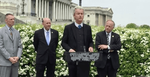 Above, Geert Wilders at the podium, with Congressmen Scott Perry, Louie Gohmert and Steve King, left to right.
