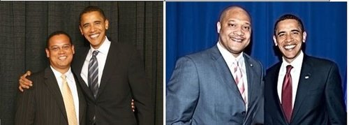 Above, Black, Muslim, Democratic Congressman Keith Ellison and Black, Muslim, Democratic Congressman Andre Carson Pictured With Barack Obama (Not A Muslim)