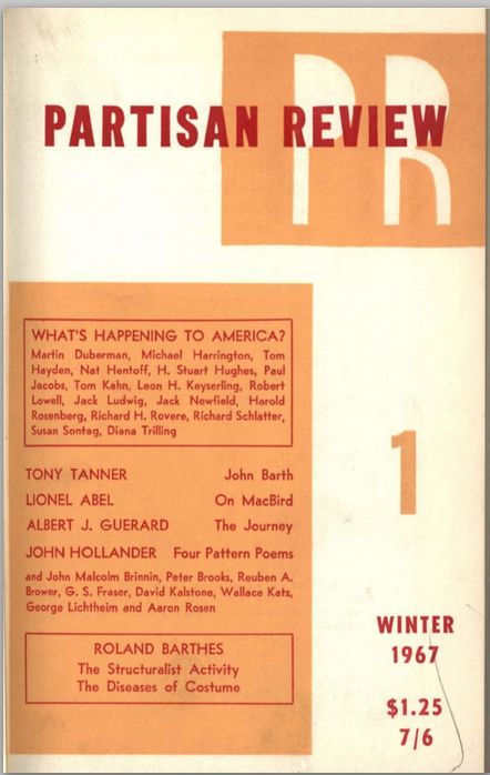 Fifty years ago, give or take a few weeks, subscribers to the quarterly Leftist journal Partisan Review were just settling down with the Winter 1967 edition — accompanied, one imagines, by a nice dry martini and a freshly-opened pack of Chesterfields.