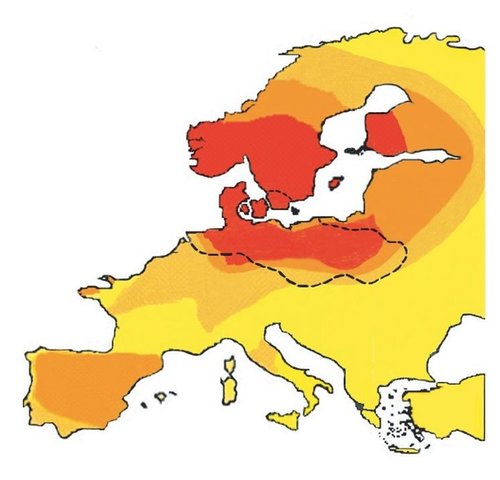 There is something very odd about this map. The further one moves in Europe from the land around the Baltic, the more prevalent lactose intolerance becomes, until in France it is very high. But France is notoriously the country that produces more varieties of cheese than the rest of the world put together …