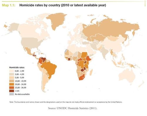 Here both author and reviewer have been sloppy. Wade provides a reference for his numbers: the U.N.’s 2011 Global Study on Homicide. It’s on the internet, and there’s the link. Country figures are in Table 8.1 on pages 92-96 (but see also Map 1.1. on page 20).