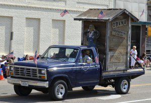 In the Norfolk Nebraska 4th of July parade the honorable mention winners were the "Norfolk Odd Fellows" whose float depicted a zombie like character standing outside an outhouse titled the "Presidential Library".