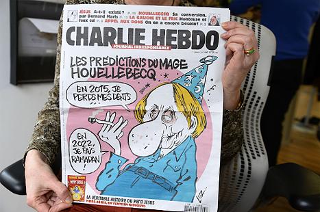 At least 12 of the staff of Charlie Hebdo, a magazine featuring the author of “Submission” on its cover this week, have been murdered by terrorists.