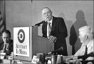 Accuracy in Media was founded in 1969 by one of my journalistic heroes, Reed Irvine, may he rest in peace, who practically invented the field of leftwing media bias criticism. I actually got to meet Irvine in October 2002, at an AIM conference at which I was one of the featured speakers. (I gave a speech on the Steven Hatfill case, on a panel that included Hatfill, the latter’s friend and spokesman, Pat Clawson, and anthrax sleuth Ken Dillon. Irvine’s other organization, Accuracy in Academia, which he founded in 1985, also published two of my articles ten years ago.) Just from that conference, I can tell you that Reed Irvine was an old Marine who was a perfect gentleman, and had perfect comic timing and the rare ability to nail a joke with a long lead-in. I believe that Irvine, who was by trade an economist at the Fed, got his ”journalism training” at the same place I got mine, the good, old American University of Can-Do.