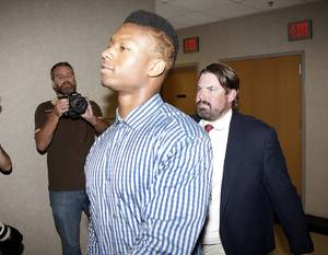 Exhibit A(iii): Black guy Dorial Green-Beckham is yet another football player, a wide receiver. He transferred to the University of Oklahoma from the University of Missouri last summer. Why did he do that? Well, because he was dropped from the Missouri football team last April after several arrests, the last one for forcing his way into a woman’s home, violently threatening her, and then pushing another woman down a flight of stairs. Both women were 18 years old. Luckily for Green-Beckham the women declined to press charges, otherwise he'd have been up for burglary and assault.
