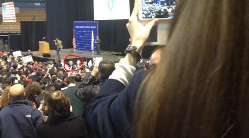 They happen in private life too. This picture captures both: my wonderful young wife Lydia, Chief Advancement Office a.k.a. FUNDRAISER for VDARE.com, snapping Donald J. Trump at his recent rally in Worcester MA.